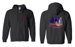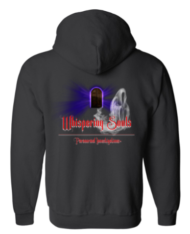 Front Top Left of Hoodie says Whispering Souls & Back of Hoodie has WSPI Logo
